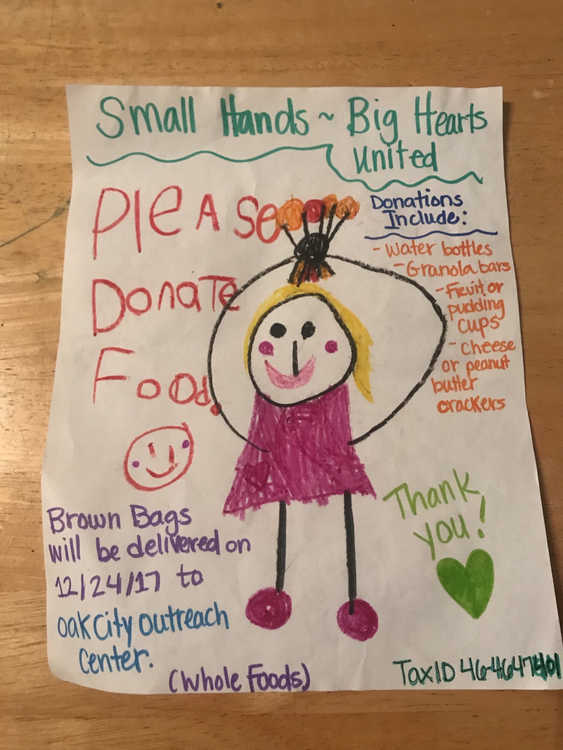 Small Hander Ava is leading an impactful Compassion Mission for the Oak City Outreach Center and needs your help! So far she has independently proposed, led and organized this thoughtful Compassion mission with ALREADY some FANTASTIC results! She was even able to get Whole Foods to donate 303 of the following to her cause: brown bags, KIND bars, water bottles and napkins. Ava and her team will be packing brown bag lunches and delivering them on Decemeber 26th to our friends at the Oak City Outreach Center. Message for more details! Great Job Small Hander Ava!